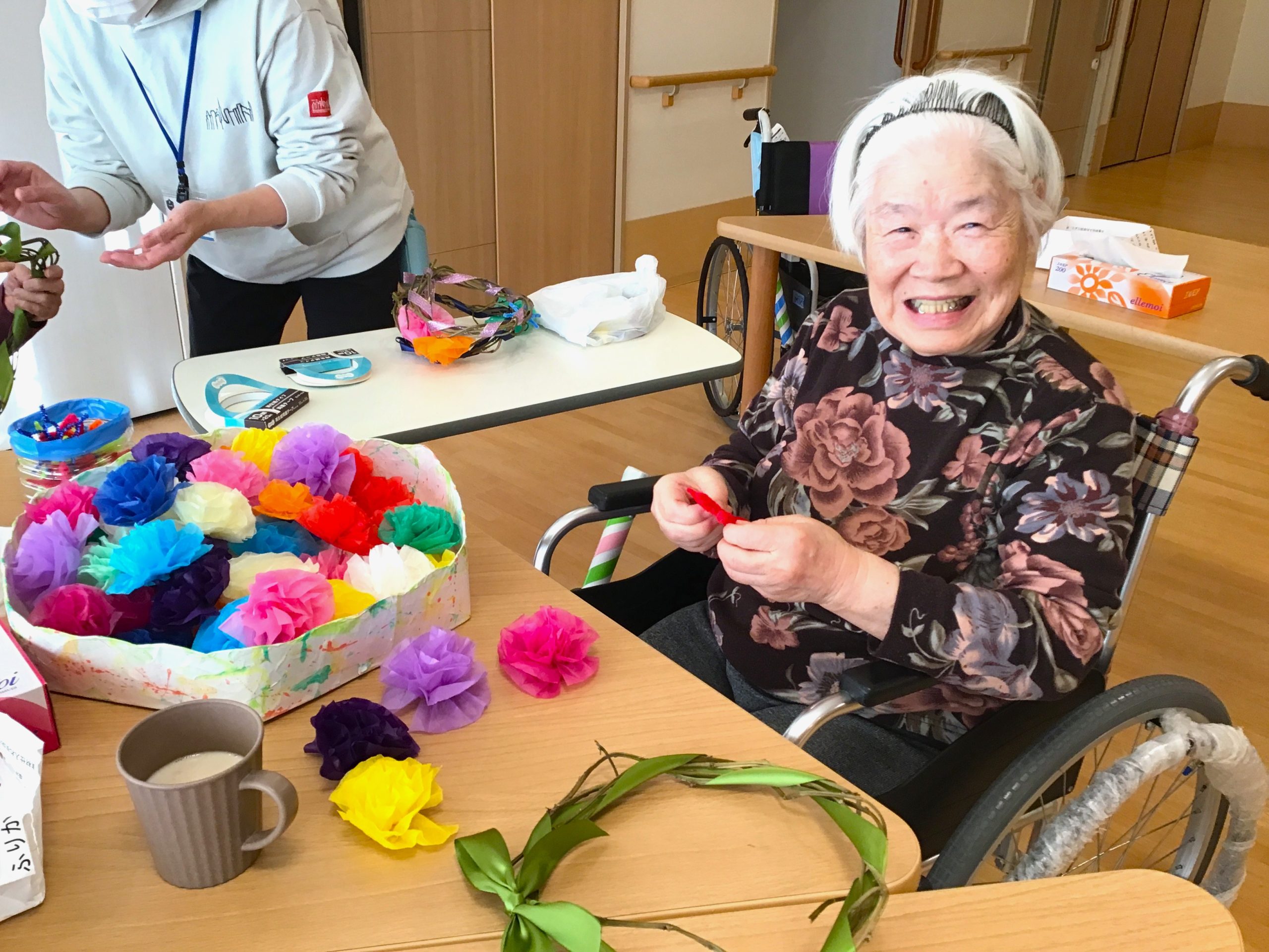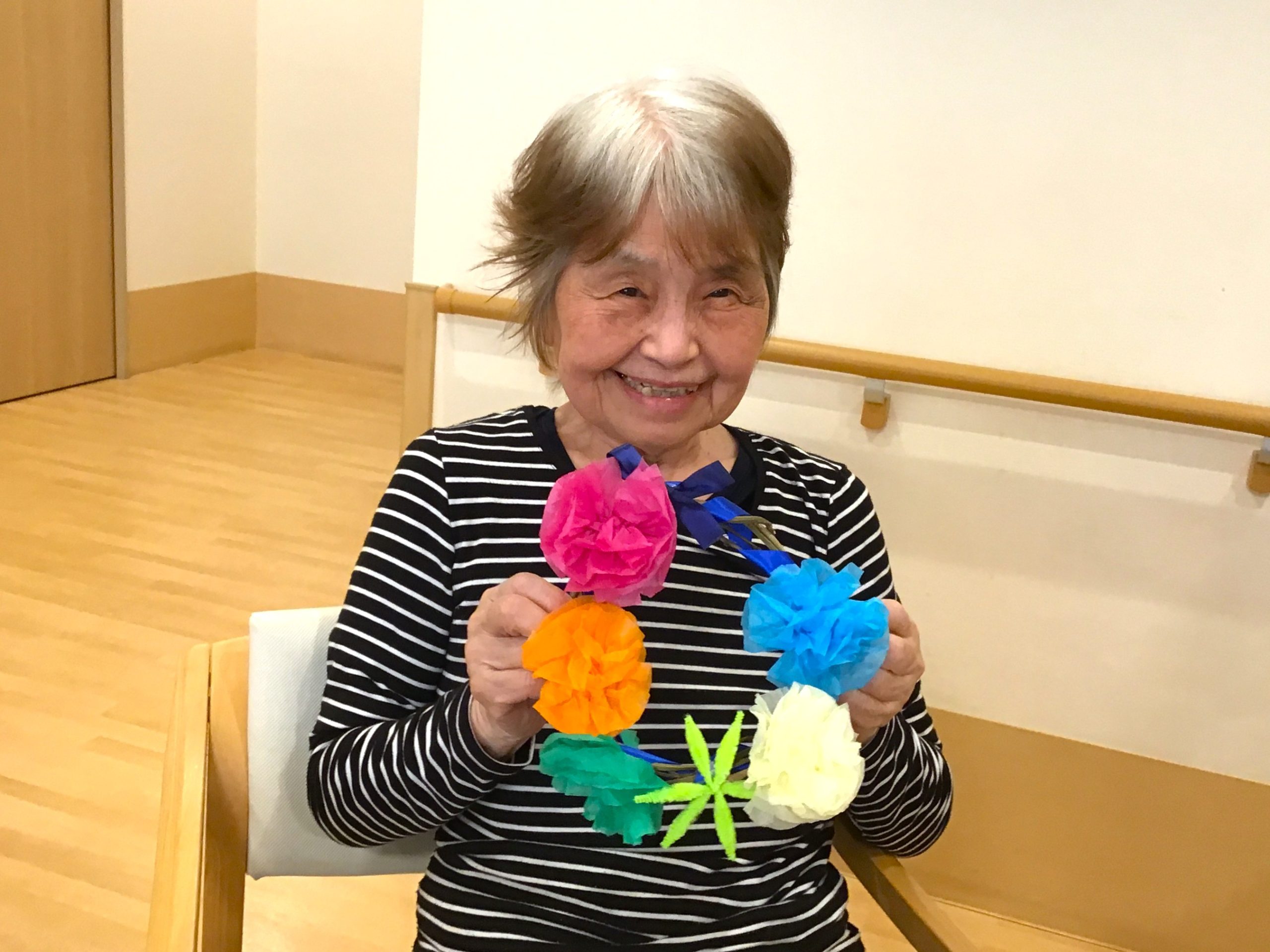 リボン🎀やペーパーフラワーで飾り付けて、季節感のある作品が出来上がりました。