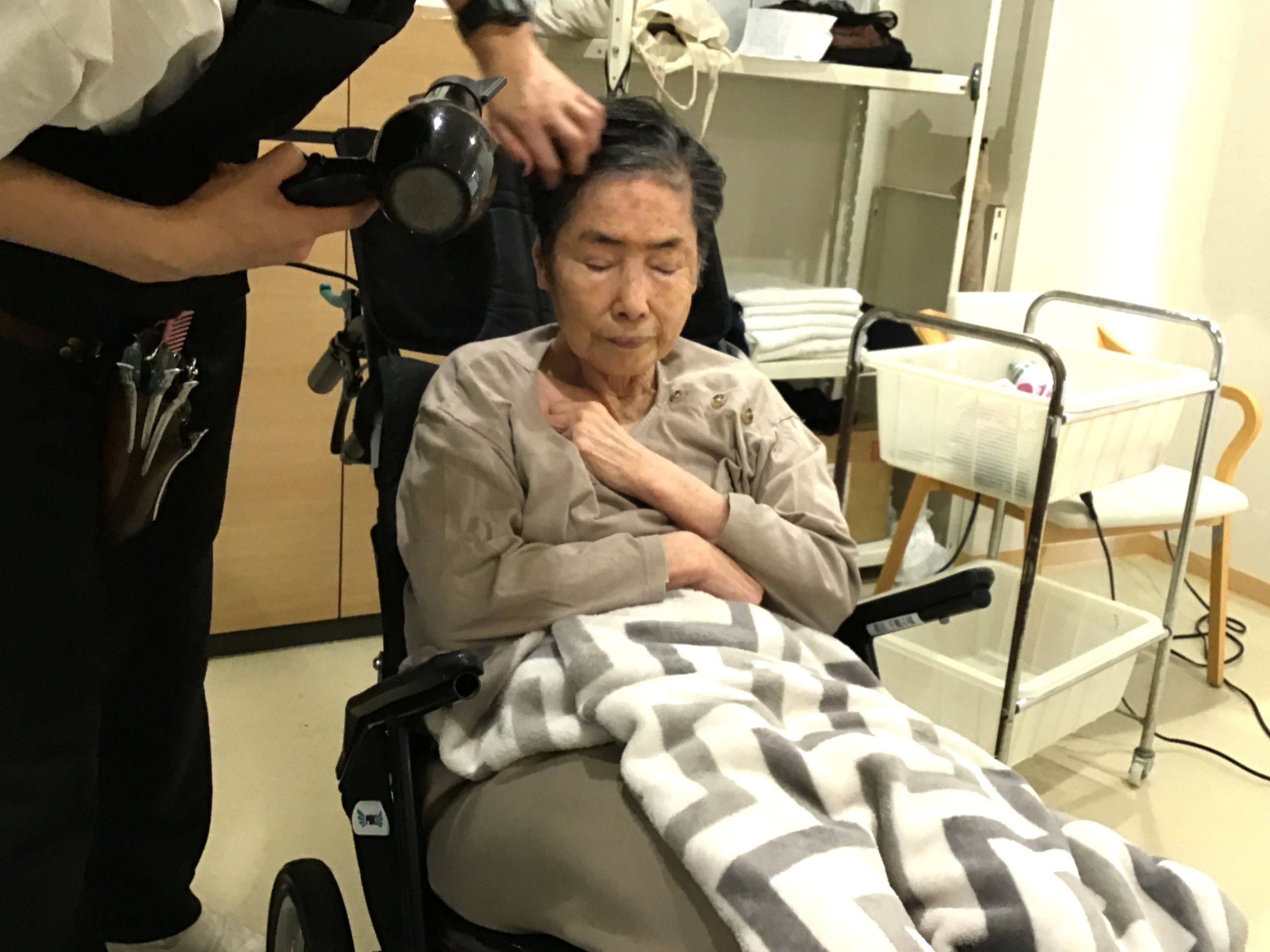 理美容の日には、理容師さん・美容師さんが施設に来てくださいます。💇♀️ 髪を整えたり、顔そりをしてもらったりと、皆さま気持ちよさそうなご様子。💇
