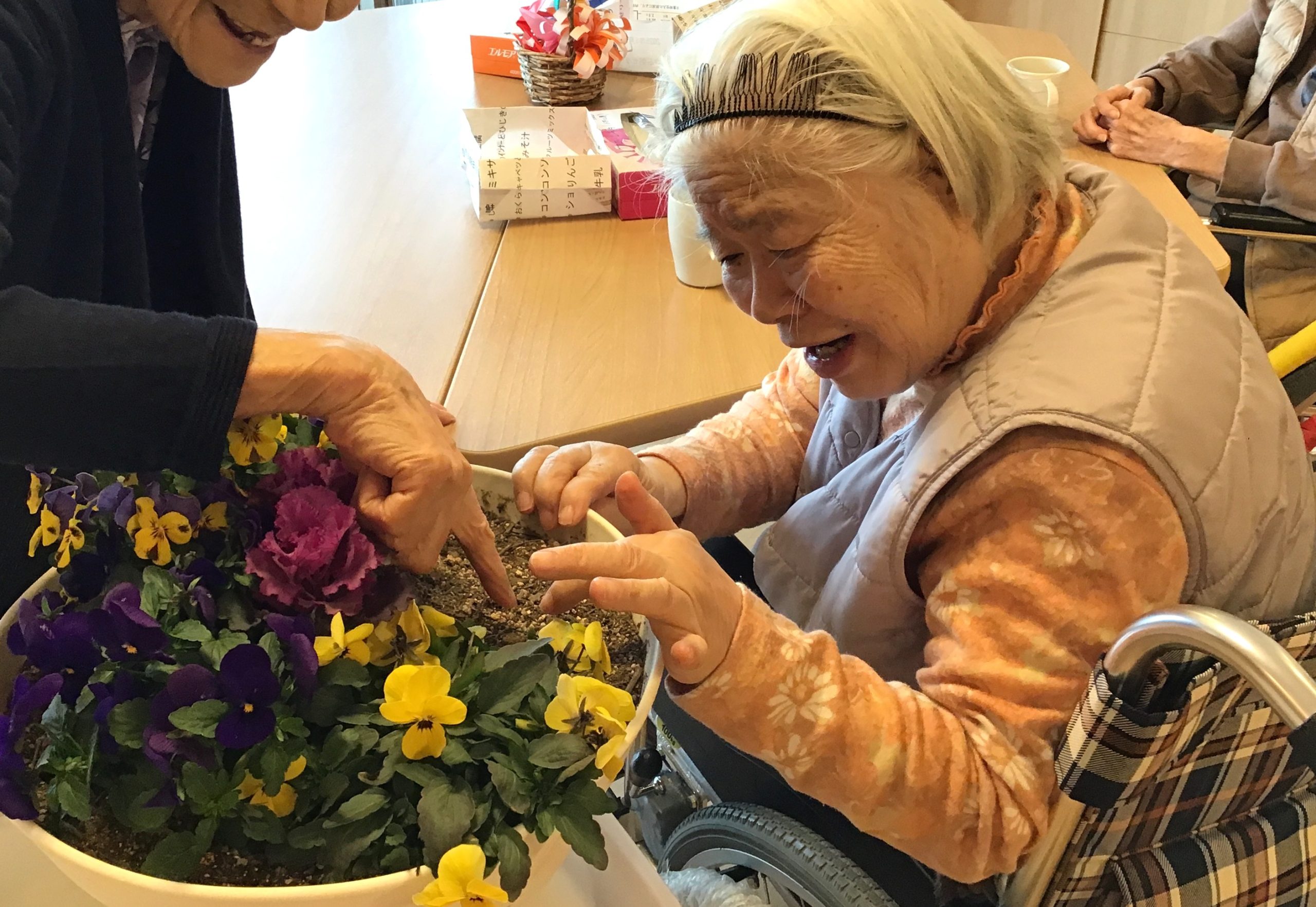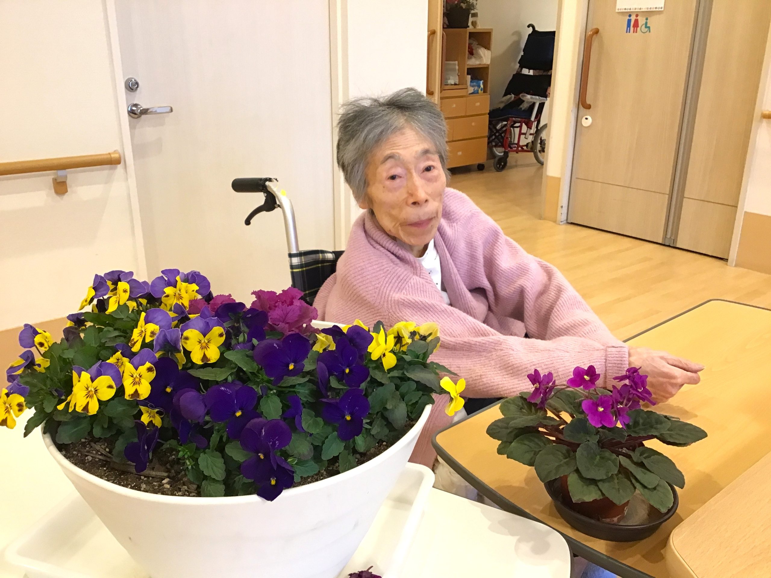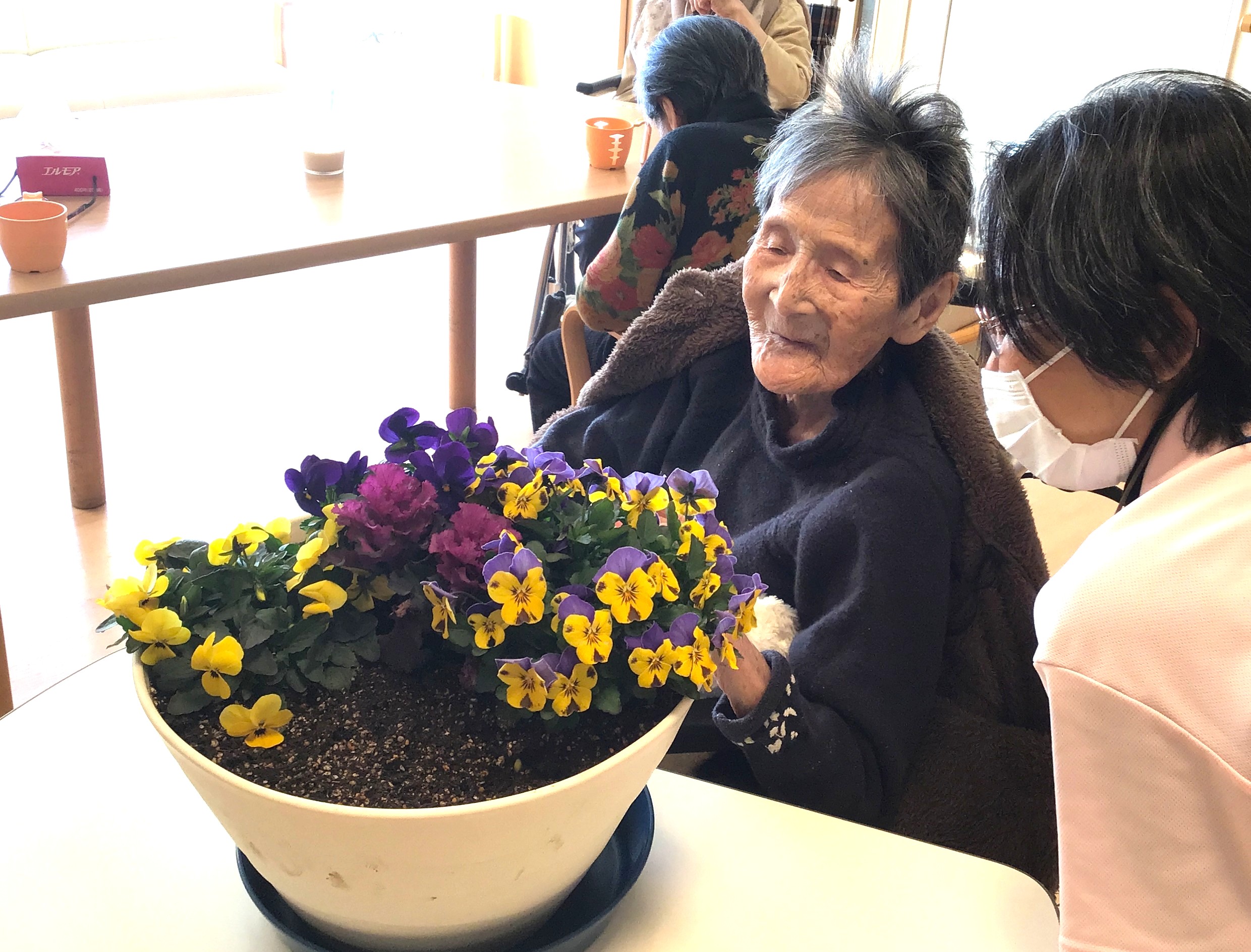 11月に利用者様が植え付けた寄せ植えを見ていただきました。