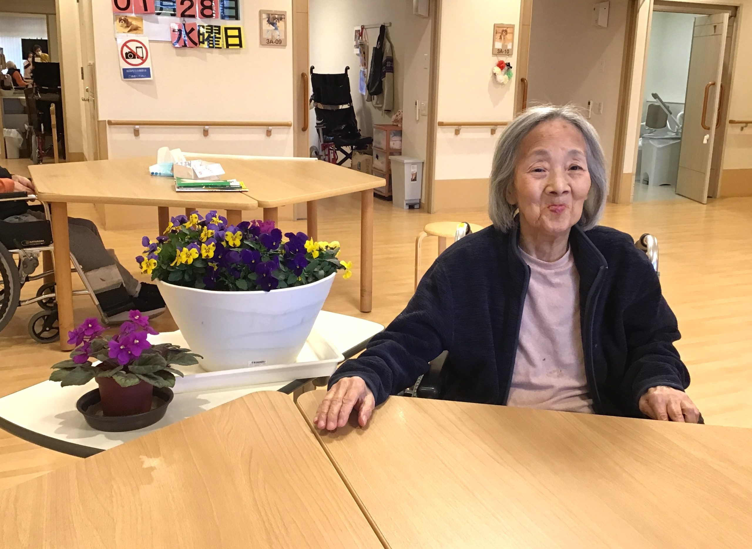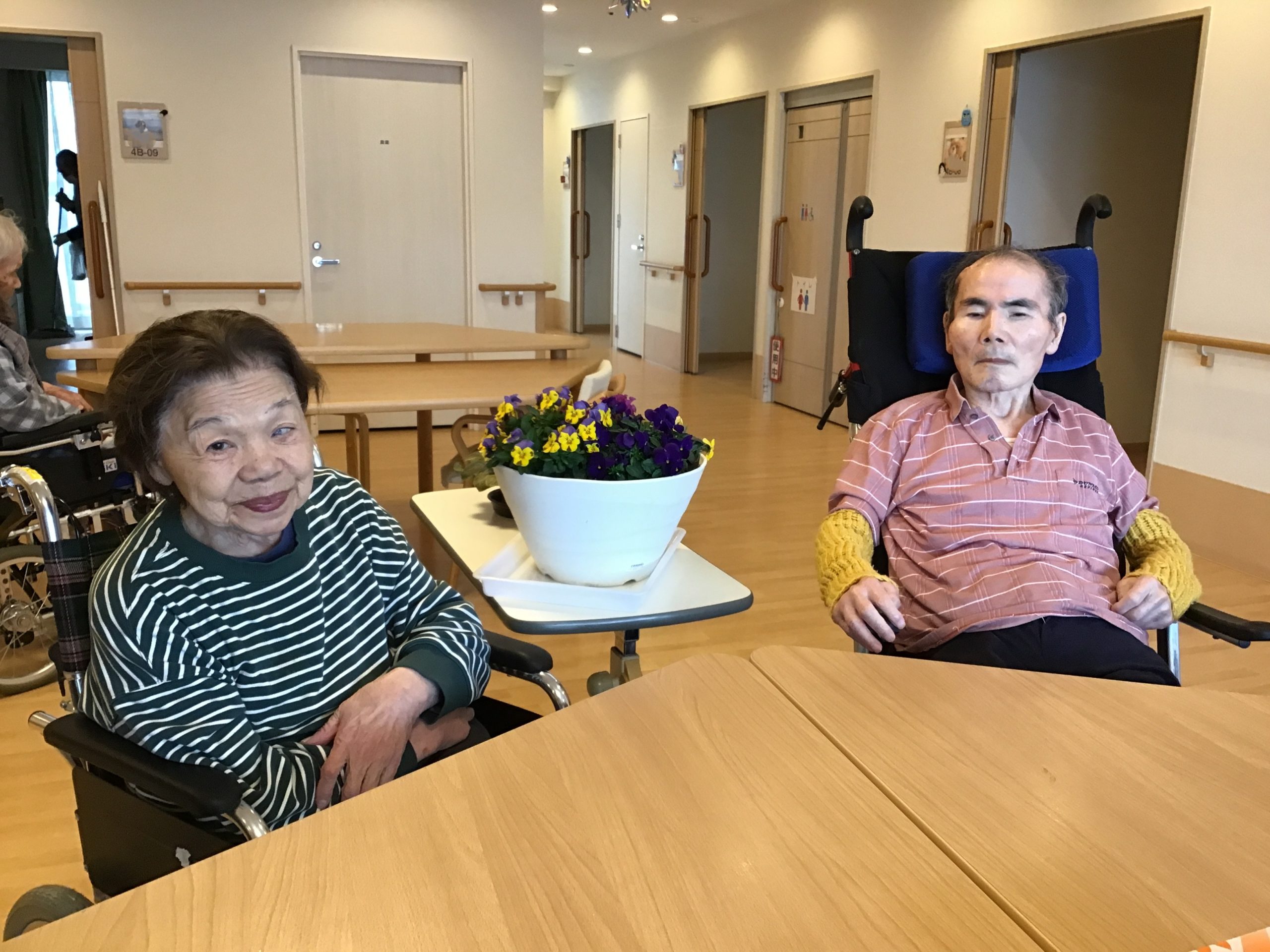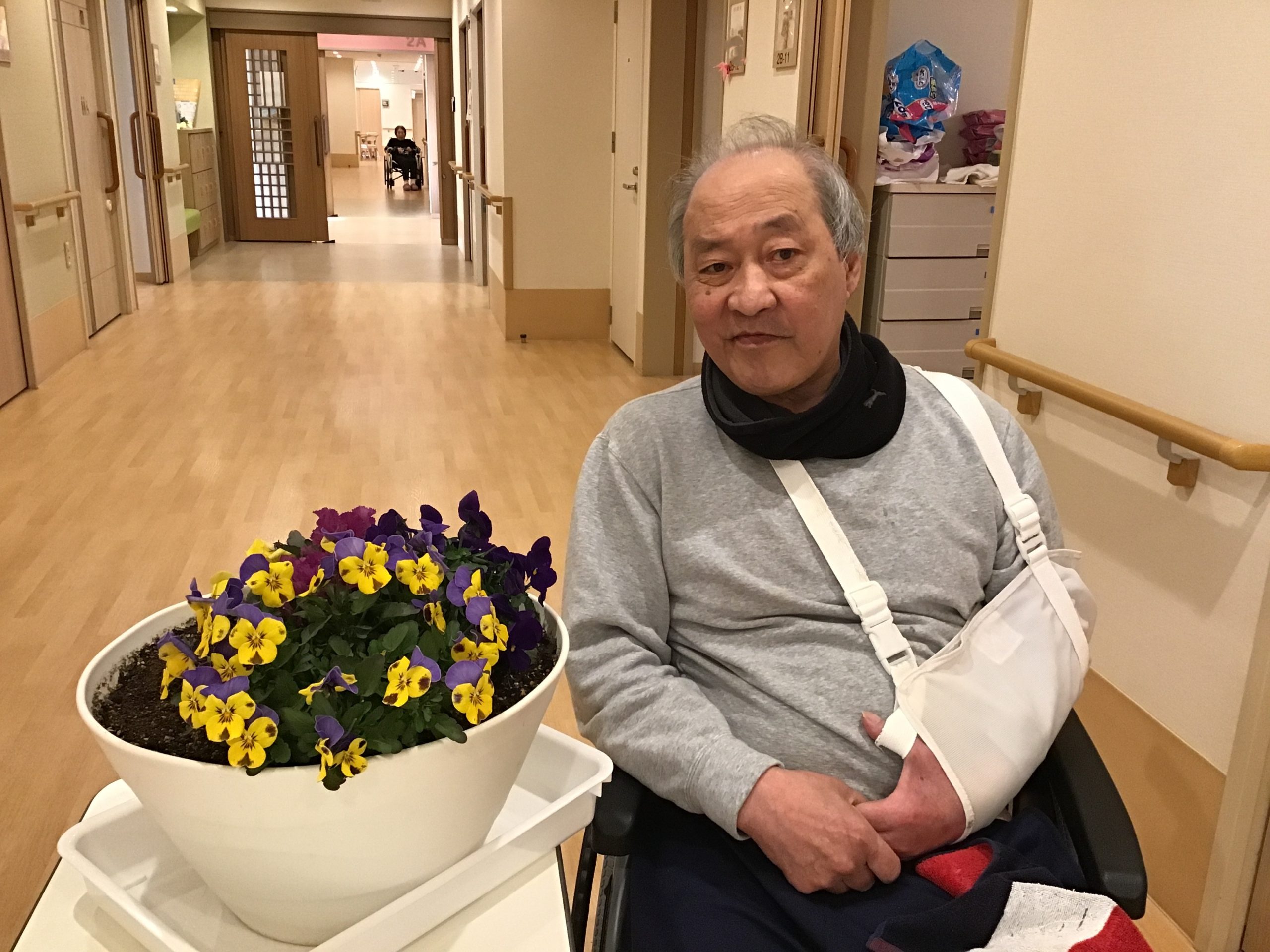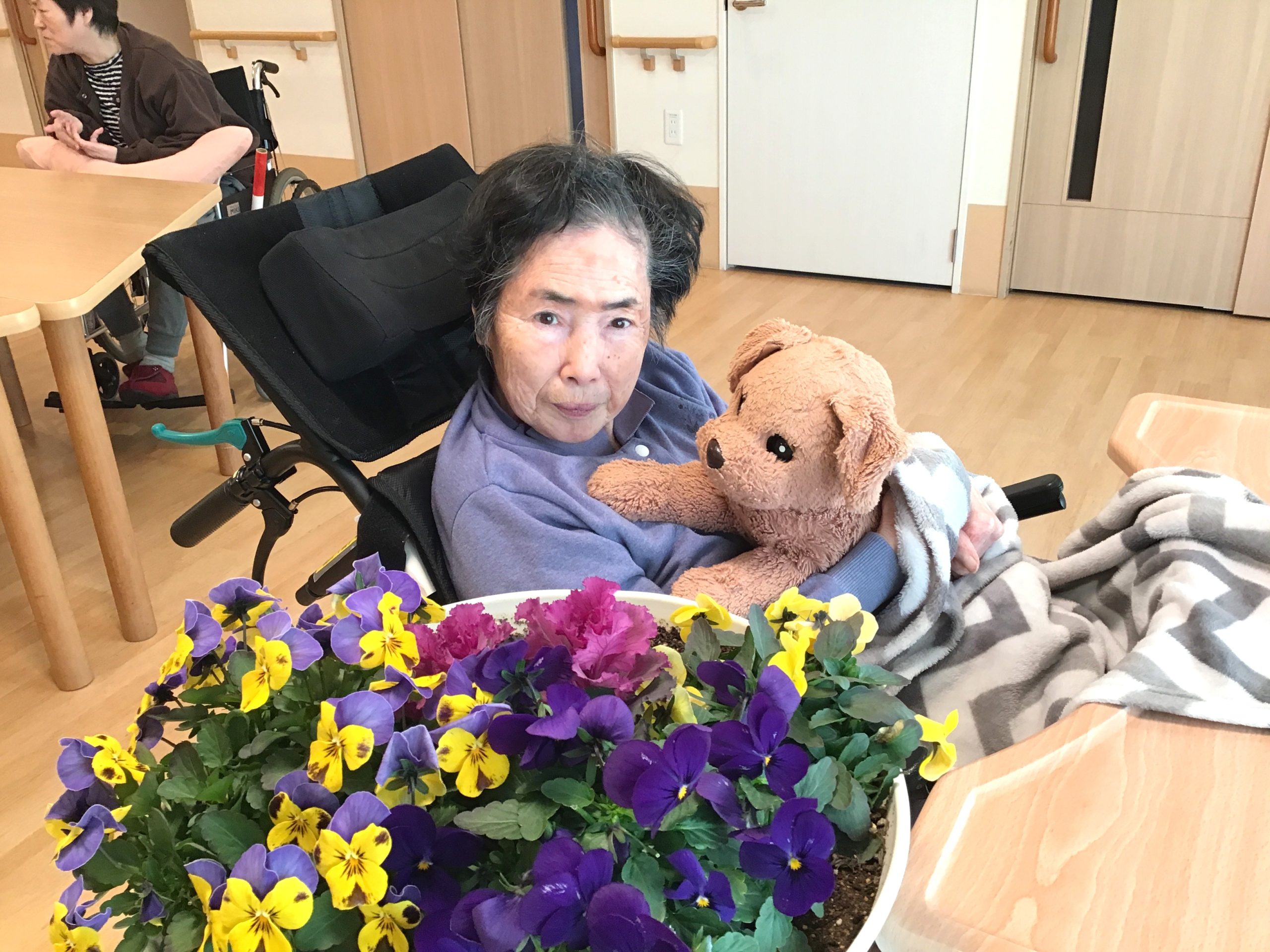 11月に利用者様が植え付けた寄せ植えを見ていただきました。