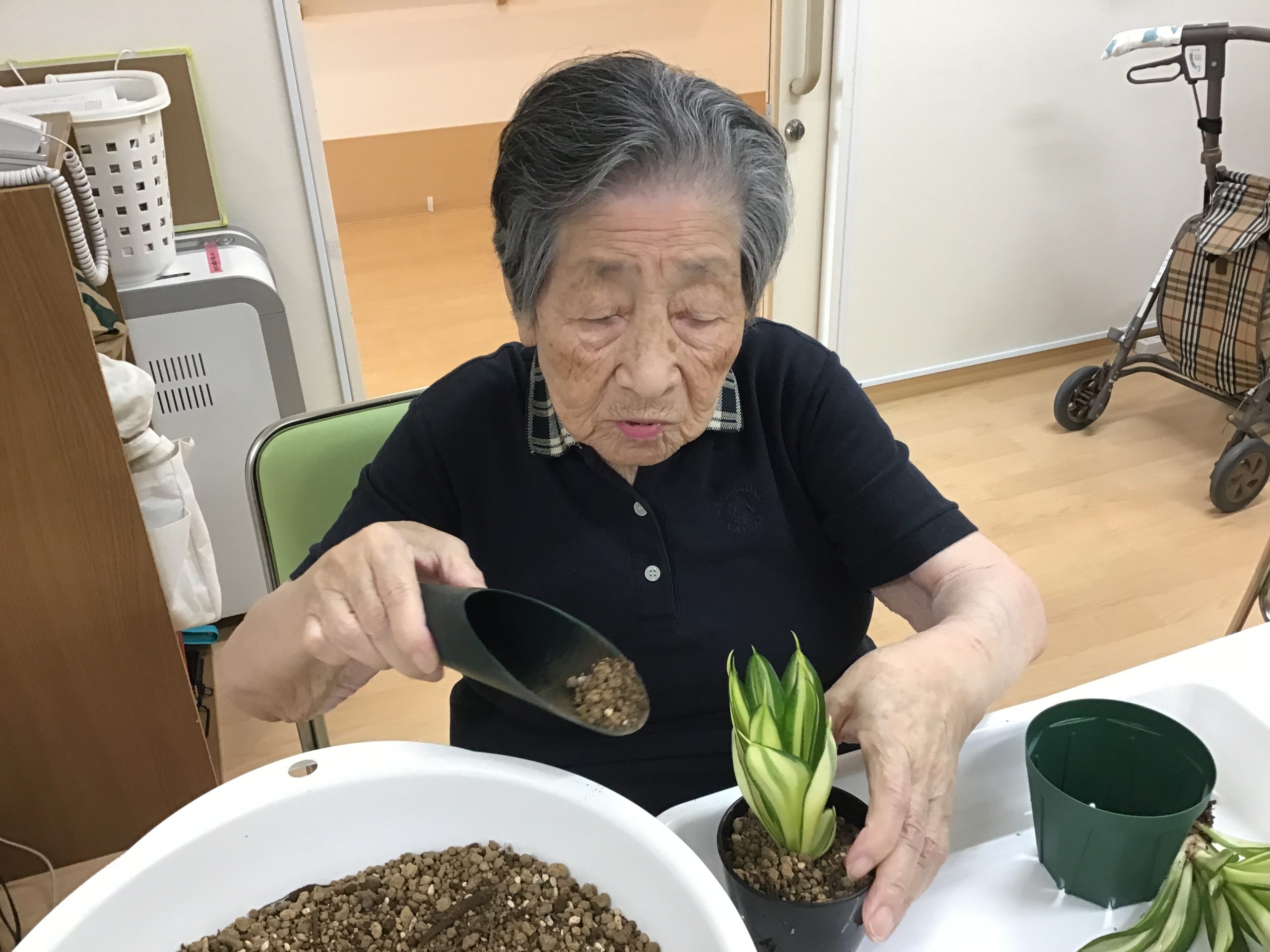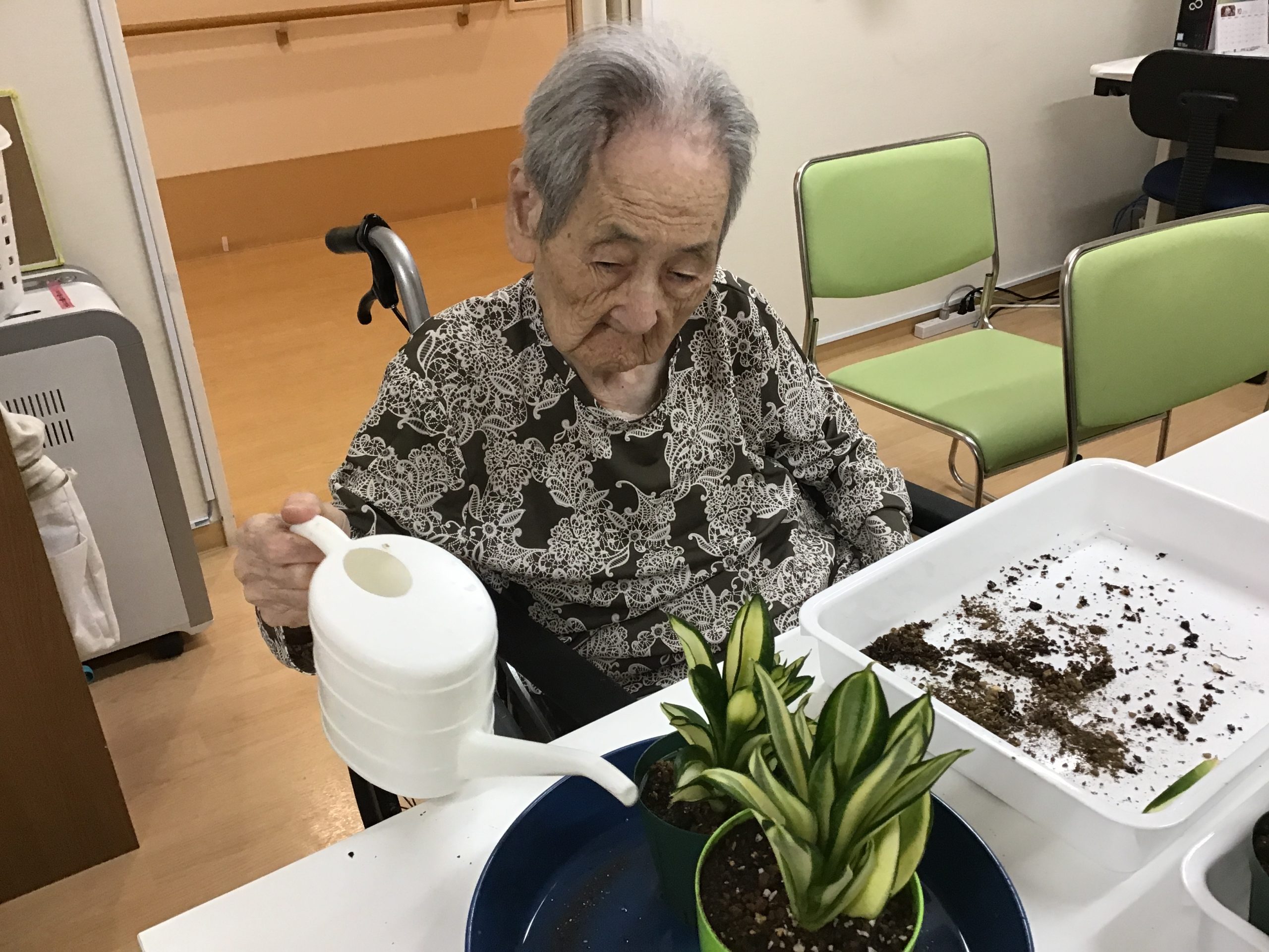 利用者様に、サンセベリアの植え替えをしていただきました。👩🌾