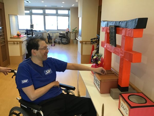 施設内の「特設神社」にお参りし、お賽銭を入れておみくじを楽しんでいただきました。